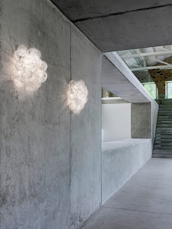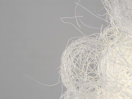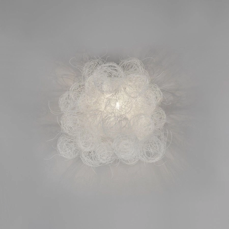 Designerski kinkiet Blum to niezwykły element dekoracji wnętrz. Lampa ścienna składa się ze stalowego drutu ze stali nierdzewnej, który wygięto w ten sposób, tworząc estetyczne bryły. Białe wykończenie podkreśla delikatność wykorzystanego materiału. Kinkiet Blum wygląda jak kłębek światła, swoją budową zaprowadza w pomieszczeniu nutę abstrakcji. Akcesoria montażowe są w zestawie, żarówkę należy dokupić osobno.