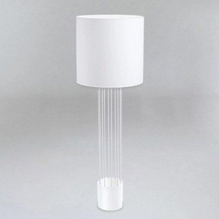 Lampa stojąca IHI 9487/E27/BI/BI Shilo to niezwykła lampa o futurystycznym designie, która będzie najlepiej pasować do przestronnego, modernistycznie urządzonego wnętrza. Prosty klosz o kształcie tuby osadzony jest na wąskim walcu złożonym z długich i cienkich prętów zatopionych w masywnej podstawie. Ten minimalistyczny, surowy model będzie doskonale wyglądał w nowoczesnym gabinecie lub salonie. Oprawa posiada miejsce na jedno źródło światła E27 o mocy 60W. Wymiary: 150 x 50 cm. Wariant kolorystyczny: biały z białym wykończeniem.