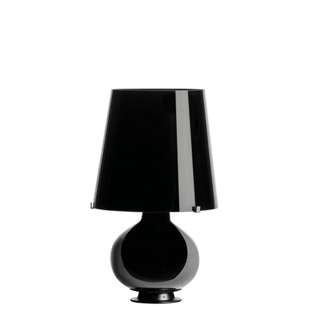 Lampa Fontana początkowo nosiła nazwę 1853, przydomek Fontana dostała dopiero później na cześć firmy, w której projektant Max Ingrand był dyrektorem artystycznym. Fontana wygląda na klasyczną lampkę nocną, jednak kryje w sobie zachwycającą opcję. W lampie stołowej można podświetlić samą podstawę, sam klosz lub całość. To za sprawą rozmieszczenia siedmiu źródeł światła w lampie: 5 żarówek E27 oraz dwóch żarówek E14, które należy dokupić oddzielnie. Czarny kolor lampy prezentuje się niezwykle elegancko.