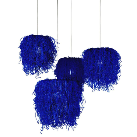 Projekty marki Arturo Alvarez budzą emocje. Szczególnie bogata kolorystczycznie seria Caos Compo. Lampa wisząca z czterema kloszami w zależności od ich koloru wpływa na emocje poprzez psychologię barw. Lampa wisząca w kolorze niebieskim wywołuje same pozytywne emocje i jednocześnie będzie stanowić dekoratorski akcent pomieszczeń. Trzy klosze designerskiej lampy sufitowej Caos powstały z japońskiego sznurka, który przez nieład, w jakim spoczywa, jest synonimem chaosu. Jednak cała konstrukcja lampy tworzy ostatecznie harmonijną kompozycję, która dekoruje pomieszczenie swoim pięknem. Żarówek brak w zestawie.