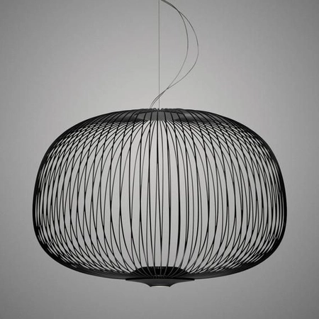 Designerska lampa wisząca Foscarini Spokes 3 w kolorze czarnym została stworzona przez włoski duet projektantów - Garcia/Cumini. Kształtem przypomina klatkę dla ptaków, która zachwyca w wielu rozmiarach i kolorach. Szprychy wyrażają wrażenie lekkości i ruchu. Konstrukcja przecina magiczną i geometryczną siatkę, światło odfiltrowuje się od środka, tworząc w pomieszczeniu ciekawe efekty bloków i pustek. Światło emitowane jest dzięki wbudowanym źródłom LED. Lampa Foscarini 2640073-20 Spokes 3 swój potencjał najlepiej wykorzysta w eleganckich restauracjach, choć to indywidualni klienci pokochali projekt, coraz częściej używając go we własnych domach. Foscarini Spokes 3 występuje w pięciu kolorach, a także trzech rodzajach, z czego każdy z nich posiada również wiele opcji kolorystycznych.