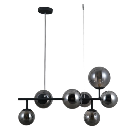 Designerska lampa wisząca o barwie satynowej czerni wykonana ze stali i szkła. Italux PND-40423-7 Frontera poszczycić się może oryginalnym futurystycznym designem. Lampa składa się z podwieszanej ramy oraz 7 przymocowanych do niej kloszów, które umieszczone zostały na jej całej długości w różnych kierunkach. Zabieg ten sprawia, że lampa z łatwością zapewni równomierne oświetlenie pomieszczenia. Każdy klosz posiada jeden gwint typu G9 dla żarówki o maksymalnej mocy 5W. Model Italux PND-40423-7 Frontera ze względu na swój niecodzienny wygląd świetnie pasować będzie od nowoczesnej aranżacji. Italux Frontera szczególnie dobrze sprawdzi się w jadalni, kuchni, salonie, sypialni oraz gabinecie. Oprawa sprzedawana bez żarówek.