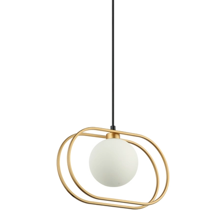 Designerska lampa wisząca Italux PND-53423-1-GD Grosetta to oświetlenie dla domów i sklepów. Model ten zbudowano ze stali i szkła, a dostępna jest w złoto-czarnej wersji kolorystycznej. Źródło światła otoczone zostało białym kloszem. Nowoczesna lampa znajdzie swoje zastosowanie w salonach, kuchniach, sypialniach, gabinetach i sklepach. Żarówka nie jest dostępna w komplecie i należy ją dokupić.