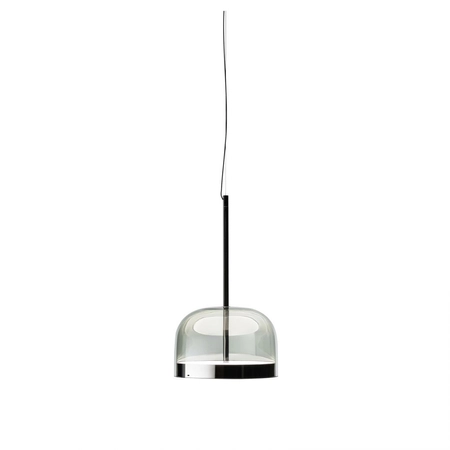 Fontana Arte Equatore to designerska lampa wisząca będąca współczesną reinterpretacją klasycznych lamp ze szklanym kloszem. W tradycyjnych lampach w tym stylu źródło światła mieści się w środku klosza, w lampie sufitowej Equatore dyfuzor jest pusty, a efekt świetlny jest wytwarzany przez dwie tarcze znajdujące się wewnątrz metalowego pasma. Światło jest równomiernie rozprowadzone na powierzchni dysków. Dolny emituje światło w dół, a górny oświetla szklaną nasadkę, magicznie promieniując światłem. Strumień światła można ściemniać (1-10V). Lampa występuje w trzech rozmiarach oraz w dwóch kolorach.