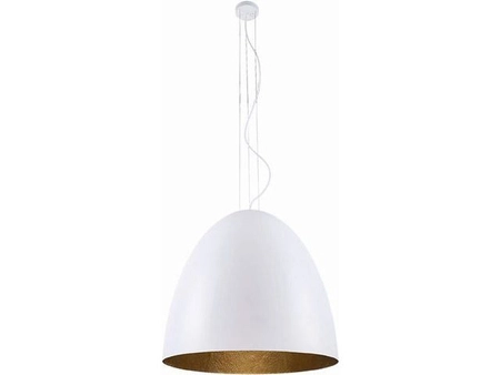 Lampa wisząca Egg od Nowodvorski to nowoczesne oświetlenie w kolorach obecnie najbardziej pożądanych na rynku. Designerska lampa 9023 swoją budową przypomina przekrój jajka, a połączenie złota i bieli zaprowadza w pomieszczeniu atmosferę luksusu i nadaje mu eleganckiego stylu. Maksymalna długość zawieszenia lampy wynosi 300 cm, więc można ją dopasować do różnego rodzaju miejsc, jednak jej budowa najlepiej prezentuje się w przestrzennych pomieszczeniach z wysokim sufitem. Lampa w prywatnym mieszkaniu może posłużyć np. do oświetlenia salonu. Do lampy należy dokupić 5 żarówek E27. W ofercie dostępna jest także większa wersja lampy XL.