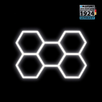 Efektowne oświetlenie LED Blaupunkt Hexagon 243 X 483 cm, Konfigurowalny system LED o ciepłej barwie w kształcie plastra miodu do showroomu, galerii, salonu samochodowego, serwisu, garażu