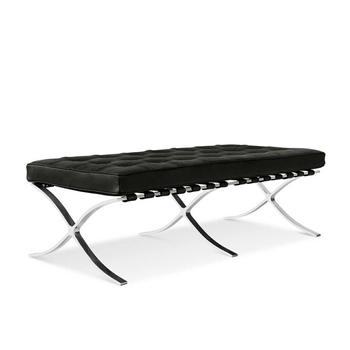 Ławka BARCELON czarna - włoska skóra naturalna, stal polerowana
