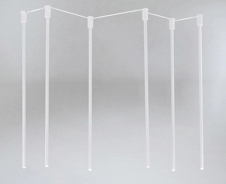 Oprawa sufitowa marki Shilo z serii Dohar 9402/G9/BI/BI Alha N – to nieszablonowa biała lampa o długich mierzących 110 cm trzonkach G9 na sześć żarówek 3W LED. Ta oprawa montowana natynkowo doskonale nada się do nowoczesnych wnętrz do oświetlania blatów, stołów itp. Lampa daje możliwość wymieniania kolorów końcówek