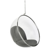 Fotel wiszący BUBBLE poduszka szara - korpus akryl, poduszka wełna