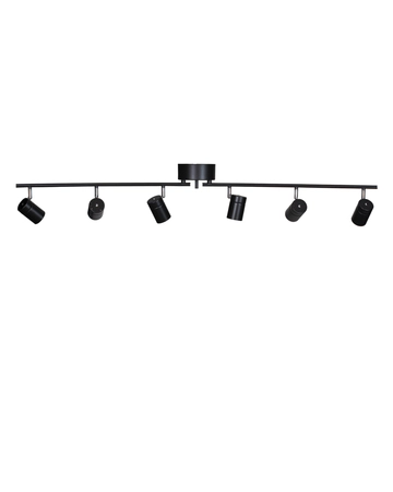 Correct Spotlight By Rydéns to wielofunkcyjna sufitowa listwa oświetleniowa LED z sześcioma regulowanymi reflektorami GU10 (max. 7W LED). Idealna jako oświetlenie punktowe do salonu, kuchni, korytarza lub biura, pozwala na precyzyjne kierowanie światła w wybrane miejsca. Modułowa konstrukcja umożliwia ustawienie listwy w linii prostej, pod kątem lub w kształcie litery L. Wysoka jakość wykonania, matowe wykończenie oraz łatwy montaż na standardowym haku czynią ją rozwiązaniem nie tylko estetycznym, ale też praktycznym. Correct Spotlight ma długość 124 cm i wysokość 17,5 cm, a dopasowana osłona sufitowa dyskretnie maskuje podłączenie. Lampa nie zawiera źródeł światła – rekomendowane są ściemnialne LED GU10.