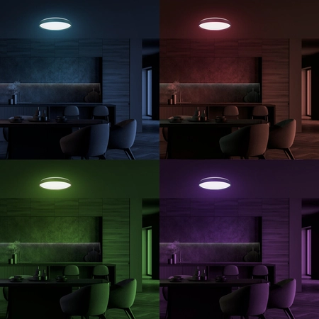 Ta niezwykła plafoniera o średnicy 390 mm to połączenie nowoczesnego designu z kolorową magią. RINGO RGB oferuje pełen zakres barw RGBW, co oznacza, że możesz dostosować oświetlenie do swojego nastroju i potrzeb. Wszystko to jest sterowane za pomocą pilota, co sprawia, że zmiana kolorów staje się prosta i przyjemna.