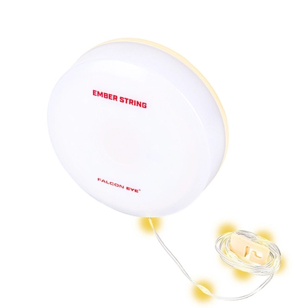 EMBER STRING to kompaktowa lampa LED do kempingu, ogrodu, balkonu i kampera, wyposażona w 10-metrowy łańcuch świetlny emitujący ciepłe światło stałe i migające. Idealna do tworzenia atmosfery w plenerze i w domu.