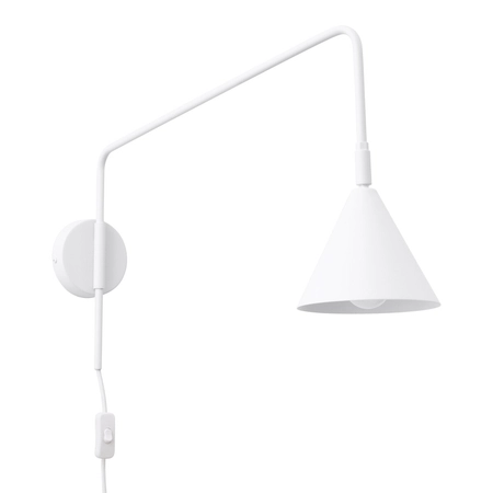 NOX to nowoczesny kinkiet o wyjątkowo lekkiej formie i wyraźnym charakterze. Prosty, metalowy wysięgnik zakończony geometrycznym, stożkowym kloszem tworzy intrygującą kompozycję, która świetnie sprawdzi się w nowoczesnych, skandynawskich czy industrialnych aranżacjach.