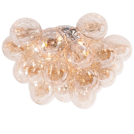 Ekskluzywna lampa sufitowa Gross By Rydens to wysokiej jakości lampa designerska wykonana z niezwykłą starannością. Plafon przyciąga spojrzenia dzięki 24 szklanym, delikatnym kulom w kolorze bursztynu, które pięknie połyskują i odbijają światło. Niesamowite wykończenie lampy z kolekcji Gross 4200990-5503 sprawia, że jest to elegancki i subtelny plafon o średnicy 50 cm, który może się stać ozdobą każdego pomieszczenia. Idealnie sprawdzi się np. jako oświetlenie salonu, ale także przedpokoju urządzonego w stylu glamour lub nowoczesnym. Do lampy należy dokupić 6 żarówek z gwintem G9.