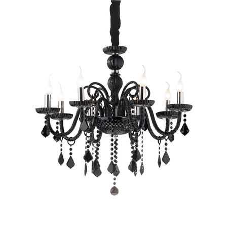 Żyrandol Ideal Lux 032511 Giudecca SP8 Nero - to wysmakowana propozycja włoskiej marki IdeaLux. W pełni z dmuchanego szkła, ręcznie wykończony, bogaty kandelabr z chromowanymi elementami, doda szyku i blichtru każdemu pomieszczeniu. Szczególnie udany dodatek do wnętrz typu glamour: jego wysoki połysk, barokowa elegancja i wibrujący kolor spełniają wszystkie warunki tego stylu.
